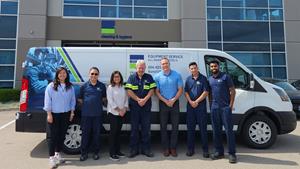 Les membres de la division Nettoyage et hygiène de Bunzl Canada célèbrent le lancement de nouveaux véhicules de service électriques à Richmond, en Colombie-Britannique — un engagement concret envers la durabilité et des opérations plus sécuritaires et intelligentes qui contribuent à faire de Bunzl Canada un Great Place to Work®.